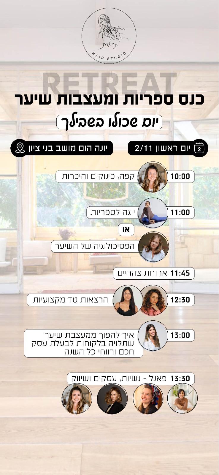 המפגש הולך להיות מרגש, מהנה, מלמד ומעשיר גם פרקטית בשיער וגם עסקית ומנטלית.